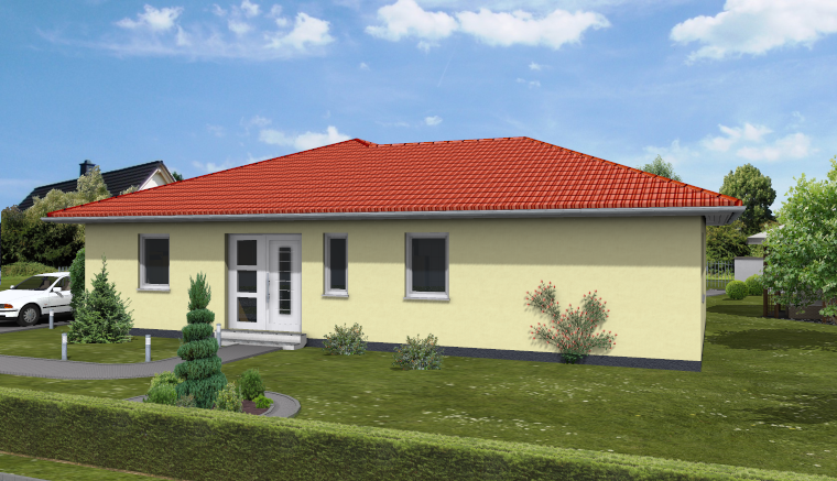 Putzfassade, Zeltdach 22 Grad, Geschosshöhe 2,65 m, Fundamentplatte