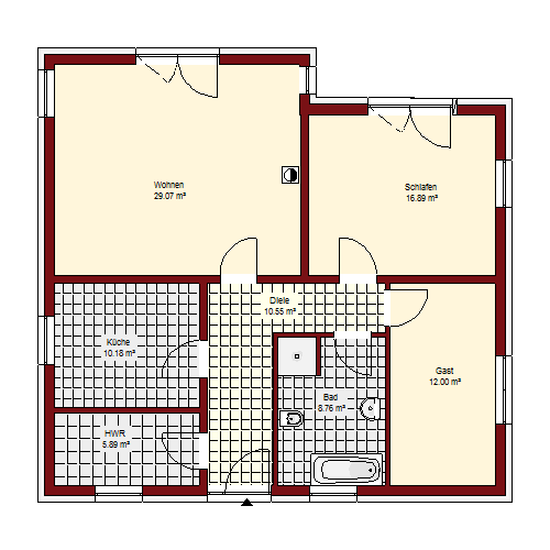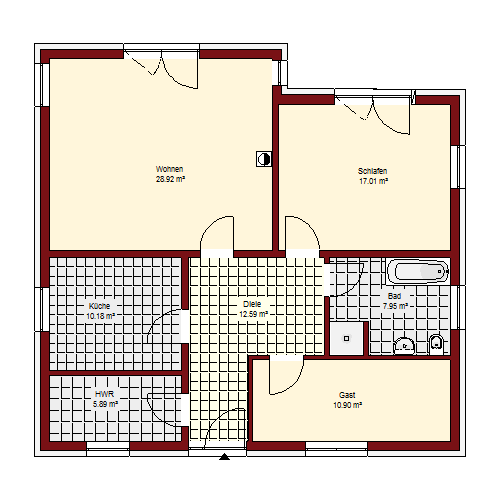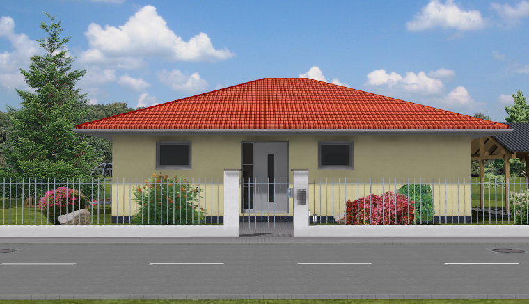 Winkelbungalow Schwerin mit 92 qm Wohnfläche für die kleine Familie oder altersgerechtes Wohnen. Auf Wunsch mit individueller Grundrissänderung. Badezimmer mit Bodentiefer Dusche.