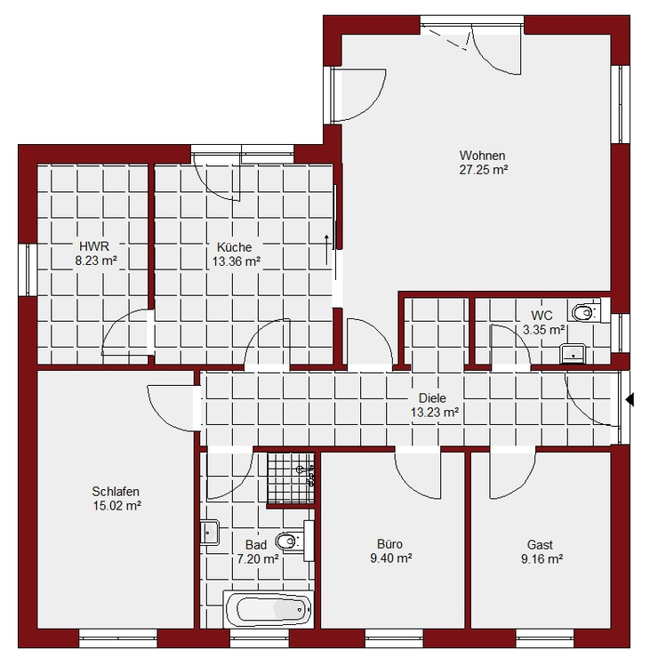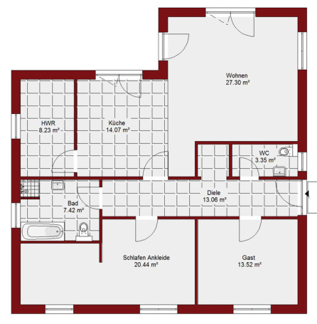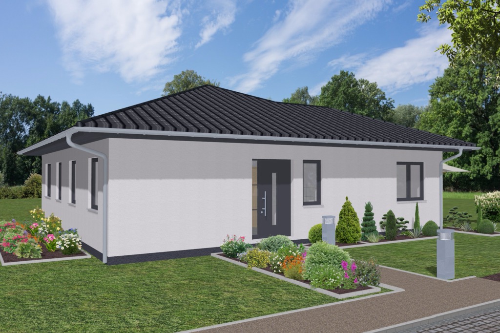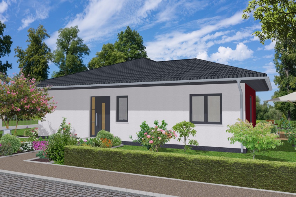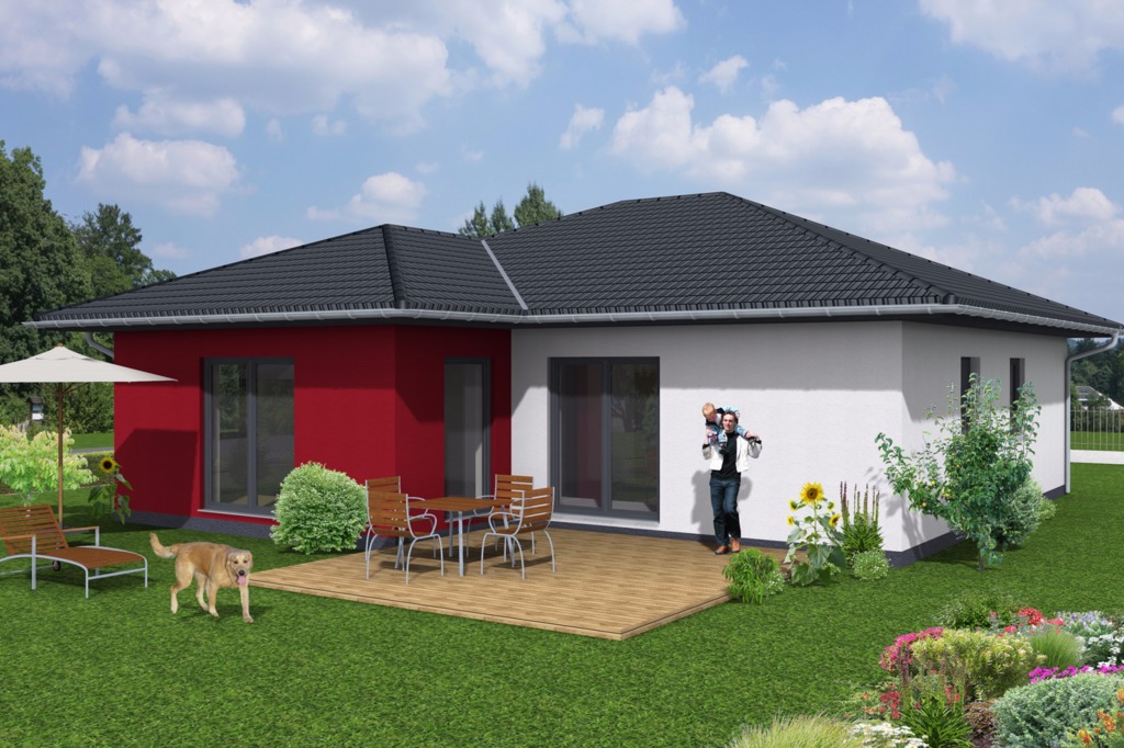Dieser Winkelbungalow mit ca. 107 m² lässt viele Möglichkeiten in der Grundrissgestaltung offen. Sowohl vom Wohnzimmer, als auch von der Küche, gelangen Sie direkt auf Ihre Terrasse und in den Garten. Auch das Schlafzimmer besitzt Wohlfühlgröße. Selbst das Kinderzimmer bietet genügend Platz. So kann man sich ein gemütliches altersgerechtes Zuhause auf einer Ebene schaffen. Auch für eine kleine Familie ist dieser Bungalow sehr gut geeignet.