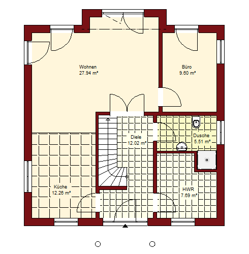 Außenmaße: 9,35 m x 10,28 m