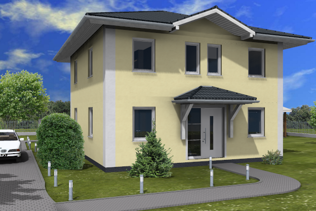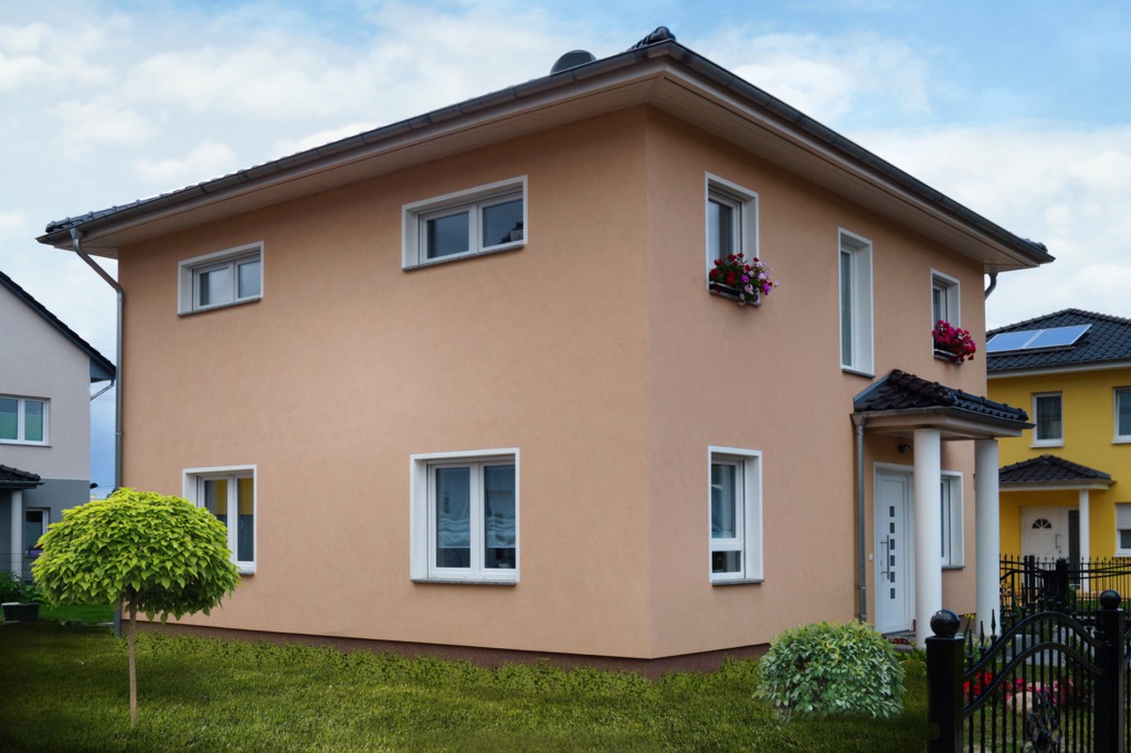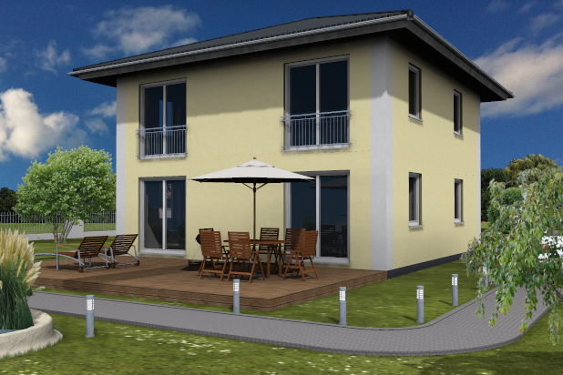 Die Stadtvilla Leipzig zeichnet sich durch klare Linien aus. Auf einer geringen Grundfläche bietet sie Platz für eine vierköpfige Familie. Im Erdgeschoss lädt der